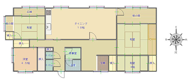 | 間取り | 4LDK(LDK・DK・K) 1階: 和室8・6・4.5・4 キッチン 風呂 トイレ |